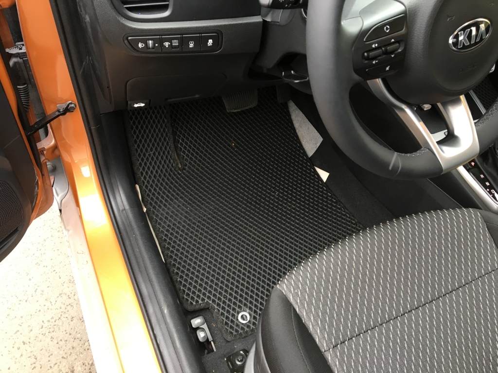 EVA коврики для автомобиля Kia Rio IV 2017 - наст. время — это лучший выбор. Покрытие из этого ячеистого полимерного материала покупают сотни автолюбителей. Коврики из ЭВА долговечные, прочные, красивые. Сроки службы изделий — от 5 лет. Они не выделяют вредных веществ, ничем не пахнут. Коврики защищают пол автомобиля от грязи и влаги, а салон — от лишней пыли.