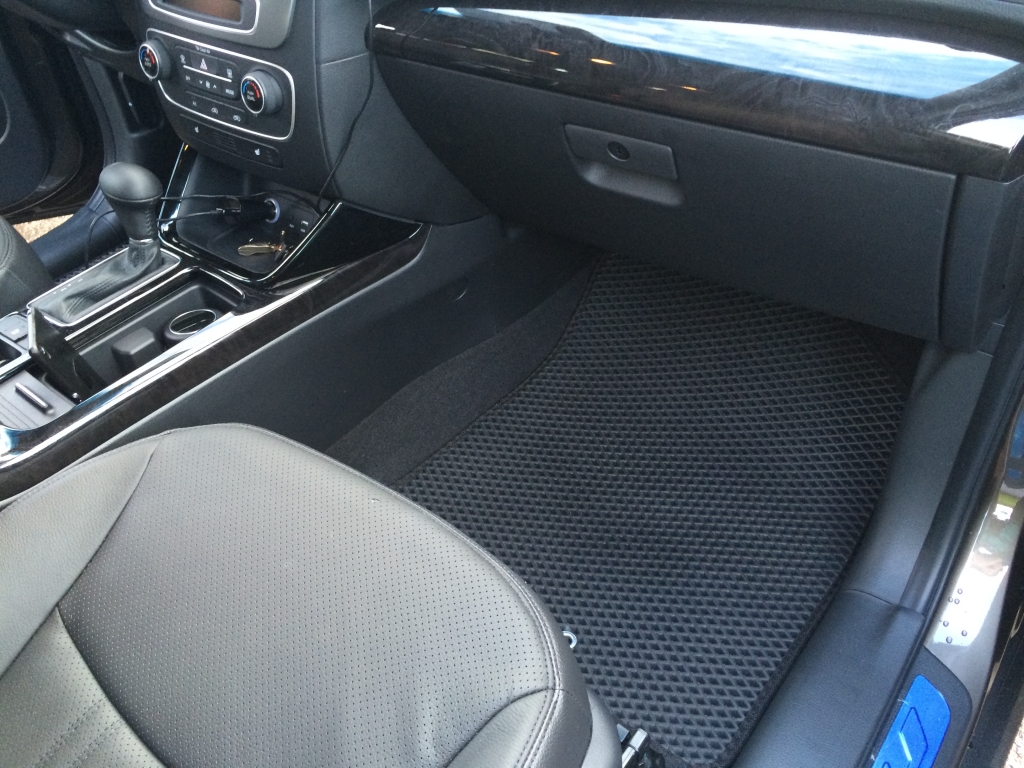 EVA коврики для автомобиля Kia Sorento Prime 2015 - наст. время — это лучший выбор. Покрытие из этого ячеистого полимерного материала покупают сотни автолюбителей. Коврики из ЭВА долговечные, прочные, красивые. Сроки службы изделий — от 5 лет. Они не выделяют вредных веществ, ничем не пахнут. Коврики защищают пол автомобиля от грязи и влаги, а салон — от лишней пыли.